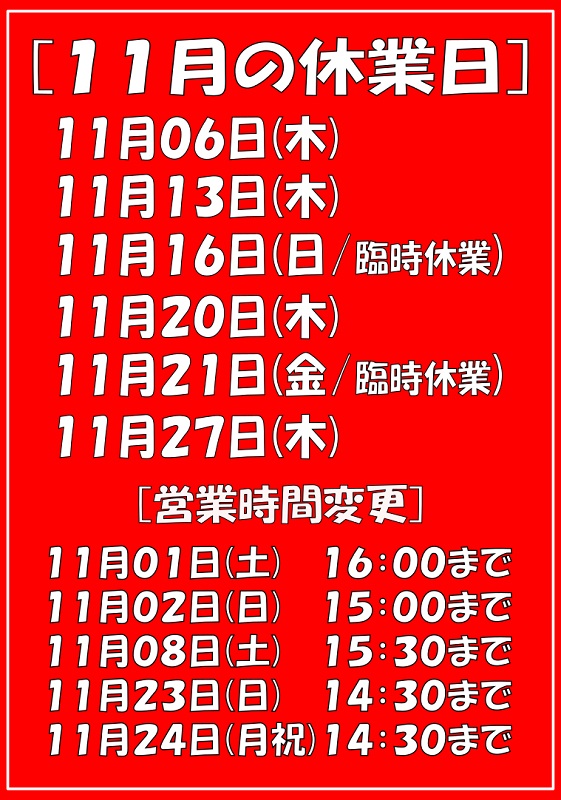 11月 営業のご案内です 2025.10.31(金) up