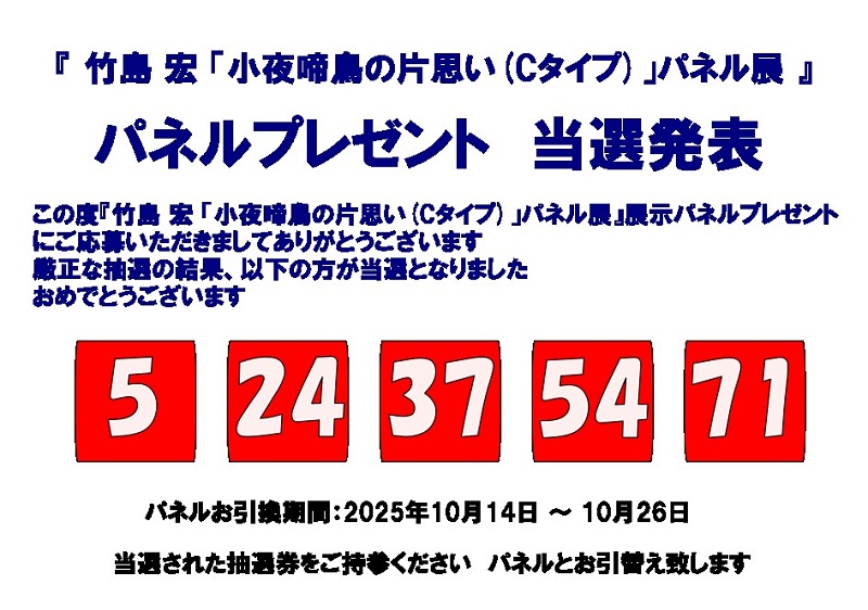 竹島 宏 パネルプレゼント 当選発表 2025.10.14(火) up